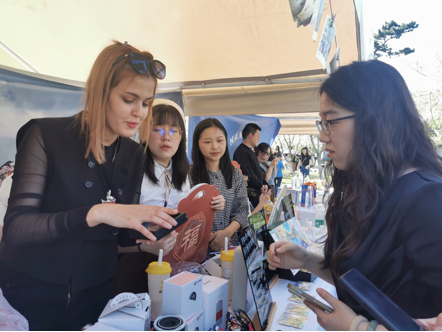 在“还有生活节”文旅市集现场,硕士生八党支部党员彭研、徐岳荣、丁瑜,积极分子陈子伊等作为志愿者向参观者热情介绍着精美彝绣手工艺品和创意十足的校园文创,吸引了众多参观者的关注,展位手工艺作品和文创产品深受大家喜爱,许多参观者纷纷了解作品背后的故事和购买作品以作纪念。