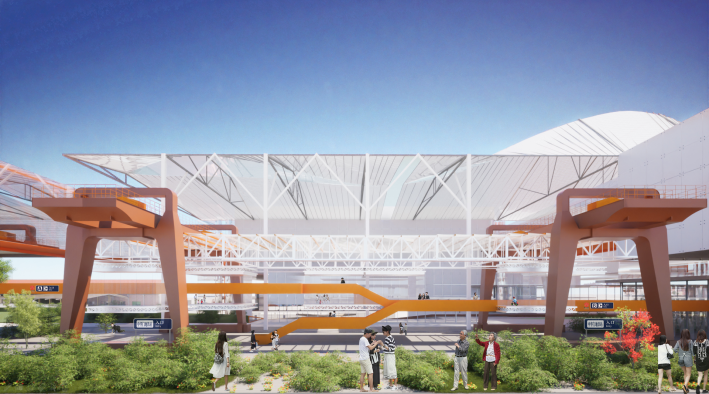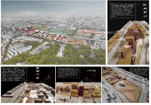 面对不同历史时期层叠在同一场地的物质遗存,和当代城市快速高效的机动与公共交通需求,本次总体城市设计提出古今门户,枢纽重启的设计纲领。我们希望场地既是城市总体层面上风貌展示的门户,也是历史遗产与当代新增开发项目近距离接触,展示历史交汇的“门户”。以历史轴线上文脉节点和公共交通刚性功能及居民生活场所的交汇门户为总体定位,本次设计提出文脉可阅读、换乘高品质,门户新记忆的战略,以期实现历史结构存续、物质遗存参与场所营造的遗产保护目标;内部快、外部连、过程有序的交通目标;以及赓续铁路站点历史,塑造城市枢纽记忆的公共记忆目标。