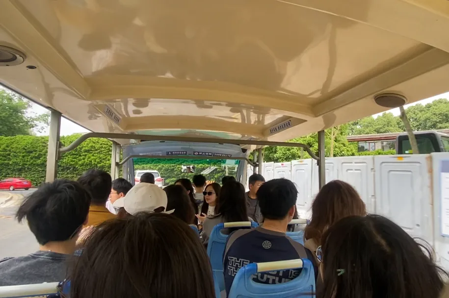 集合完毕,在领队组织下,全体成员有序登上观光车,出发前往钟山风景名胜区的内部。行车途中景观联合党支部成员们针对在建设美丽中国的政策背景下,如何让景观设计更加充分地贯彻建设美丽中国精神、践行习近平新时代中国特色社会主义思想等热点话题展开了热烈的讨论。