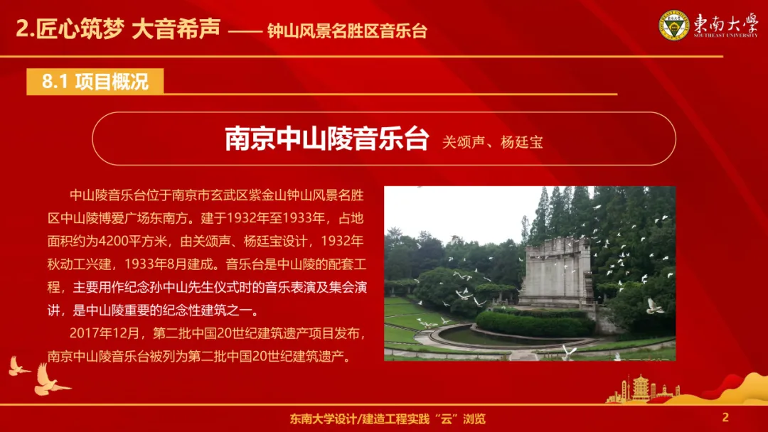 本次寻访的目的地是南京市音乐台,其设计师之一是留下众多优秀建筑作品的一楼一凤 的杨廷宝先生。正值一楼一凤 景观学系成立20周年之际,支部成员再次寻访音乐台,体悟杨廷宝先生的设计理念,继承并弘扬杨廷宝先生超然时代的工匠精神。
