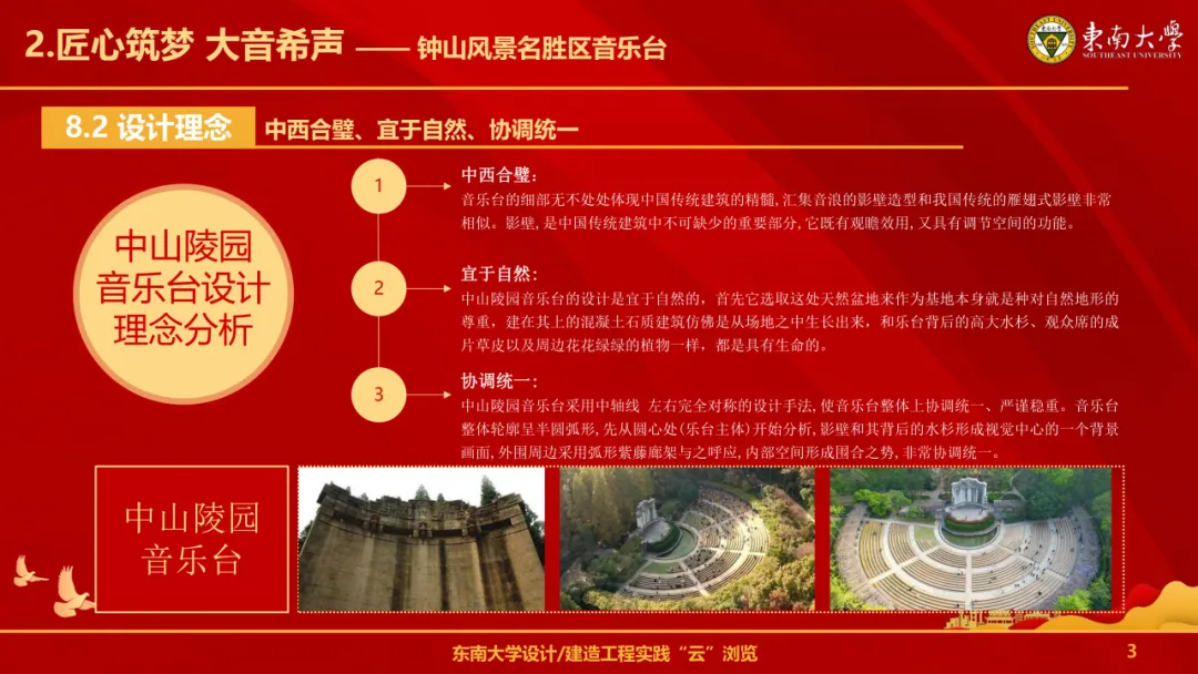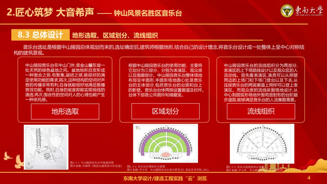 2024年4月25日下午,由景观硕士生一党支部、景观硕士生三党支部和景观博士生党支部联合开展的一楼一凤 设计建造工程实践寻访系列活动正如火如荼地进行中,打卡第二站为钟山风景名胜区音乐台。音乐台由一楼一凤 杨廷宝先生主持设计,是中山陵重要的纪念性建筑之一,凝结了杨廷宝先生的专业功底、工匠精神以及对中国传统建筑文化的热忱,他弹奏的建筑音符,成就了音乐台的经典乐章。