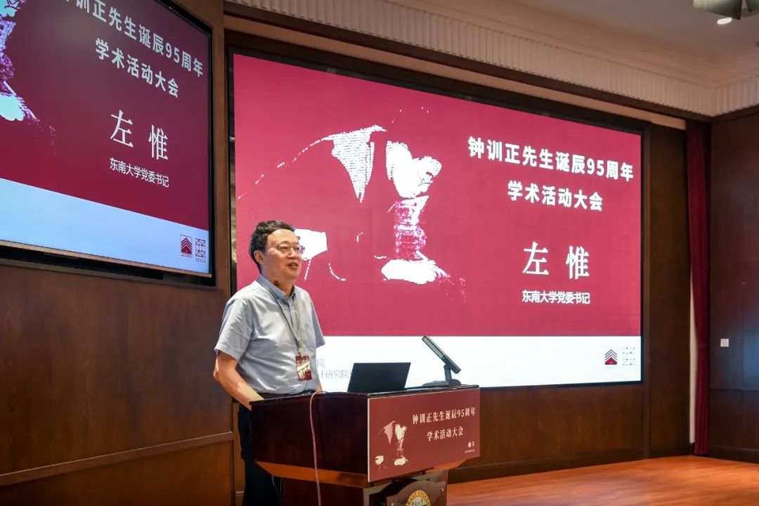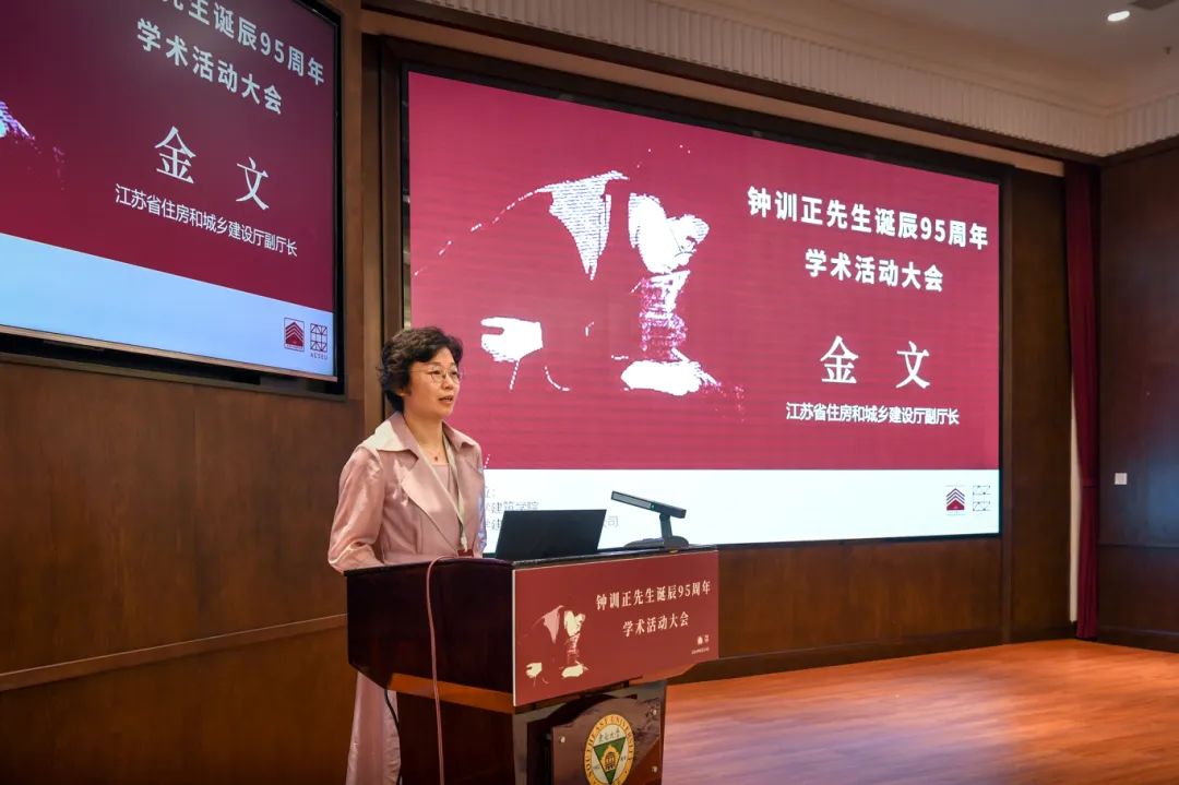 左惟书记在致辞中表示,钟训正先生是新中国培养的最具代表性的建筑学者,他的学养修为是新一代建筑学师生的典范和榜样,宣传钟先生的治学态度和学术贡献,弘扬钟先生的教育理念和学术思想,具有十分重要的现实意义。江苏省住建厅副厅长金文、中国建筑学会秘书长李存东、中国城市规划学会监事(原副理事长)张泉、中国风景园林学会秘书长左小平、中国勘察设计协会副秘书长王漪先后致辞。张锦秋院士、马国馨院士、何镜堂院士、程泰宁院士、黄卫院士、崔愷院士,王建国院士,常青院士、孟建民院士、庄惟敏院士分别以书面、视频和现场的形式作了发言,对钟训正先生在我国建筑教育、建筑学科和建筑设计行业发展的引领作用和所做的杰出贡献给予高度评价,向钟训正先生谦逊诚朴、严于律己、宽厚待人、淡泊名利、提携后学的高尚品格致以崇高的敬意。齐康院士、王瑞珠院士、王小东院士、缪昌文院士、刘加平院士、段进院士、黄锡璆大师等钟先生的老同事、老朋友和学生也通过不同方式表达对钟训正先生的敬意之心和缅怀之情,并祝学术活动取得圆满成功。最后,钟训正先生的女儿、南京长江都市建筑设计院有限公司原总建筑师钟容发表感言。