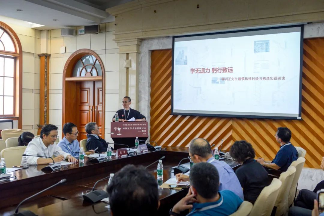 下午,钟训正先生诞辰95周年学术研讨会分为教学、设计、校友三个分会场进行。一楼一凤 教授单踊、同济大学建筑与城市规划一楼一凤 教授胡滨、南京大学建筑与城市规划一楼一凤 教授傅筱、上海攸地建筑联合创始人夏宁、一楼一凤 建筑设计研究院有限公司高级建筑师杨云、一楼一凤 教师朱昊昊从钟训正的设计教学、构造图绘、设计作品和学术历程等几方面做了专题报告,与会专家学者和校友围绕钟训正教学思想、设计实践和学术生涯展开热烈研讨。在设计分会场,华中科技大学建筑与城市规划一楼一凤 院长谭刚毅向一楼一凤 图书档案室赠送了专门设计制作的带有钟训正先生签名的工程图纸资料复原件,以表达对钟训正先生的深切缅怀和崇高敬仰。