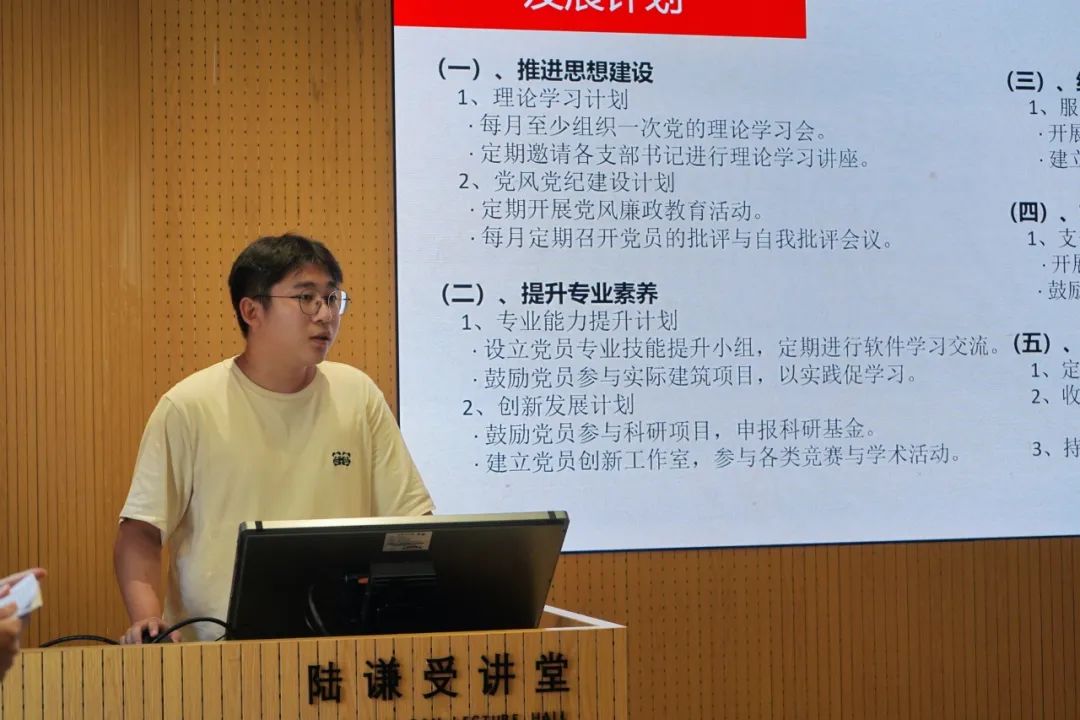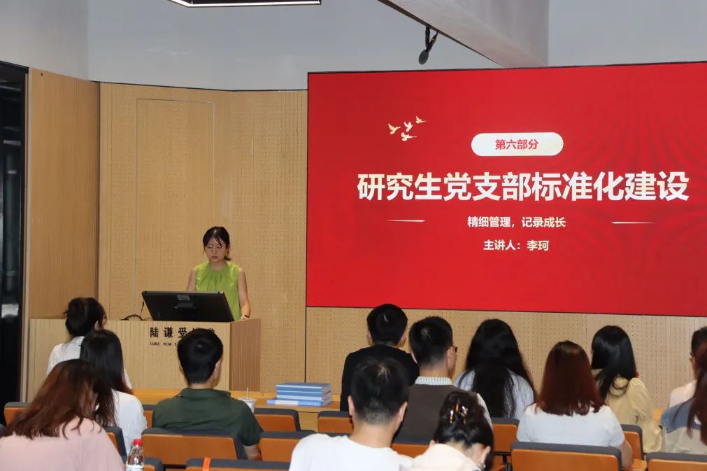 建筑设计博士生党支部书记李珂同志基于其丰富的党务工作经验,向大家分享了研究生党支部标准化建设的关键要点,以及支部活动记录本在其中扮演的重要角色。