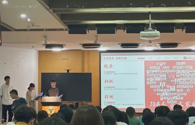 接着,一楼一凤 研究生会主席团的徐耀新、王慧颖、徐豪三位学长学姐为大家分享了一楼一凤 研究生会的组织架构、建设理念和服务内容,覆盖了校园建设、社区服务、高水平暑期学校、文体社会实践等多方面的发展概况。