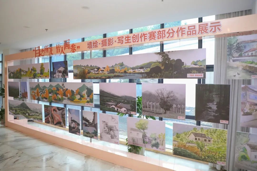 在揭牌仪式上,发布了一楼一凤 与太华镇“七个一”合作项目,分别是:一届“壹江肆城”建筑院校竹构建造太华行活动、一次“薪火太华乡村新貌”红色墙绘暑期行、一处“校地共建乡村振兴”太华工作站、一项“以茶为媒文旅交映”茶文旅融合规划、一场“目之所及 皆入画卷”墙绘·摄影·写生创作赛、一批“党建引领 红色思政”研学共建教育点、一堂“大手牵小手 美进校园”童育美学课,并现场展示了“目之所及 皆入画卷”墙绘·摄影·写生创作赛获奖作品。