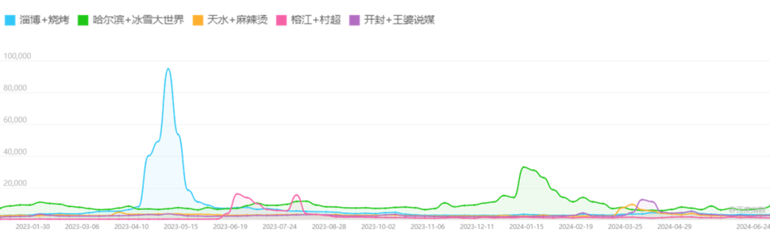 典型新晋网红城市的网络热度趋势变化(根据百度指数表征)