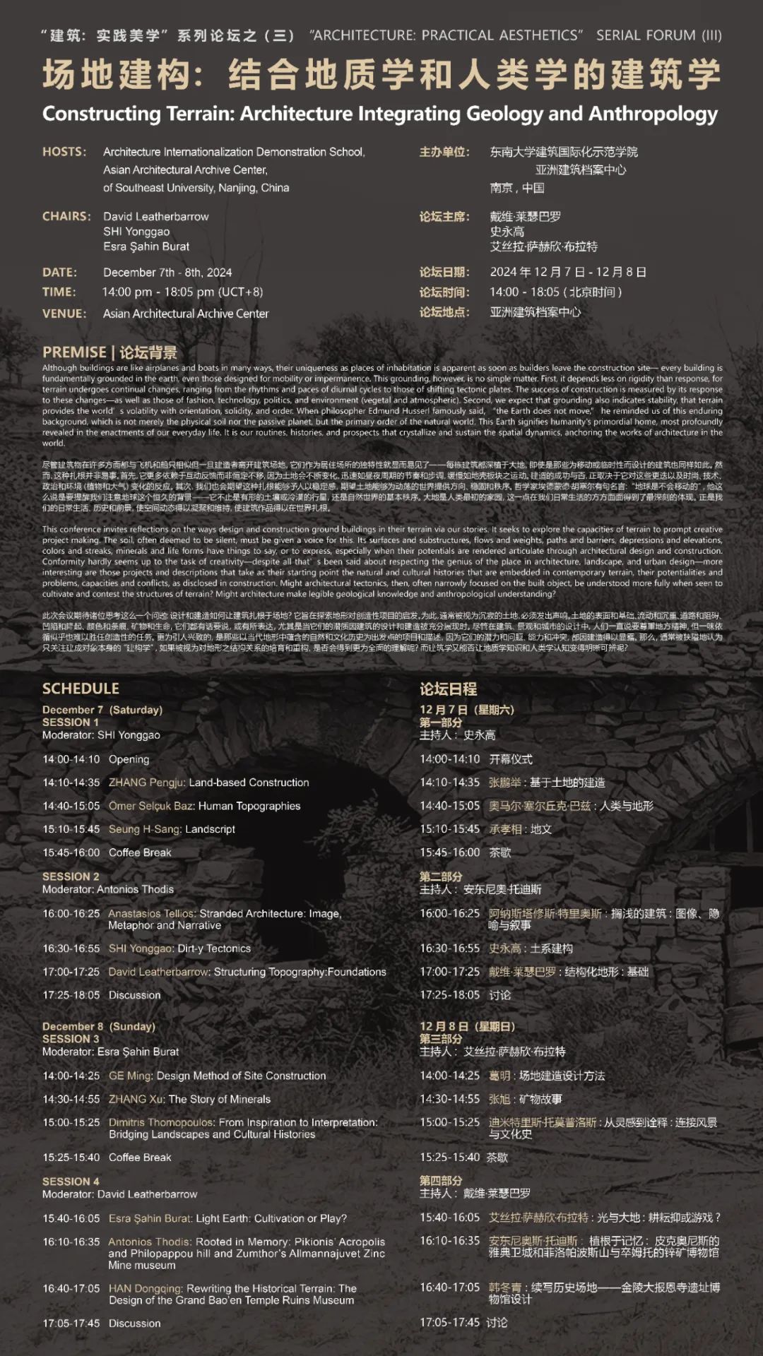 此次演讲从神话中的地形描述开始:“最初诞生的是浑沌;接着便是宽胸的大地,那所有生灵永远牢靠的根基。”——赫西俄德,《神谱》(119)。本次演讲将探讨赫西俄德提出的两个意象:大地的“宽胸”和“牢靠根基”,以及它们如何为人类存在提供基础。当建筑承担其基本任务时——将文化实践的模式以建筑的方式持久地展现,这两个意向既是建造前的目标,也会在建成后被实现。本次演讲将以设计与建造的一个具体主题为研究焦点:建造地基——建筑的最初前提,其“宽广”与“牢靠”在各种形式中得以体现。研究将从构筑于紧贴地表上下的土方工程的草图开始,涵盖当代、早期现代和启蒙时期的建筑作品。