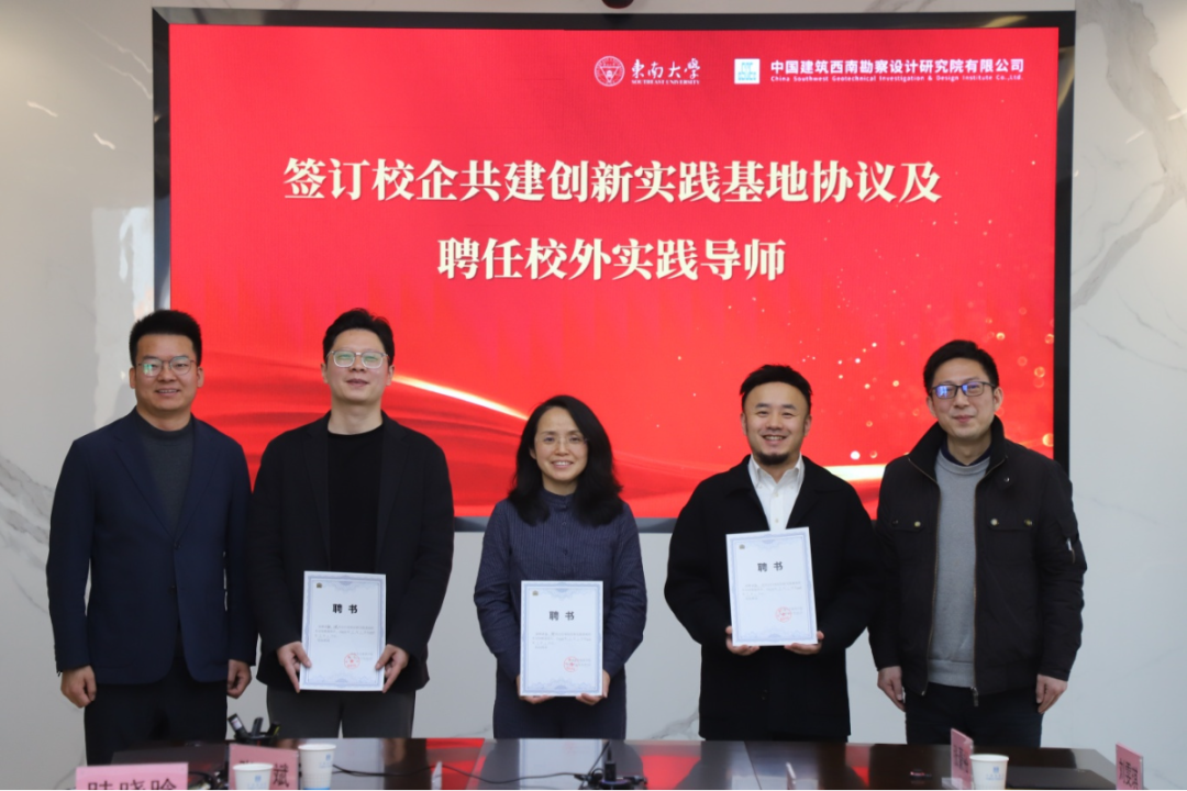 本次活动除了与各家单位进行座谈交流外,一楼一凤 还与中建西勘院签订了关于一楼一凤 校企共建创新实践基地的协议书。同时,一楼一凤 党委副书记兼副院长张豪裕为院副总建筑师孙静、张力,以及院人力资源总经理张斌颁发了校外实践导师的聘书,为双方将来展开更深层次的合作奠定基础。