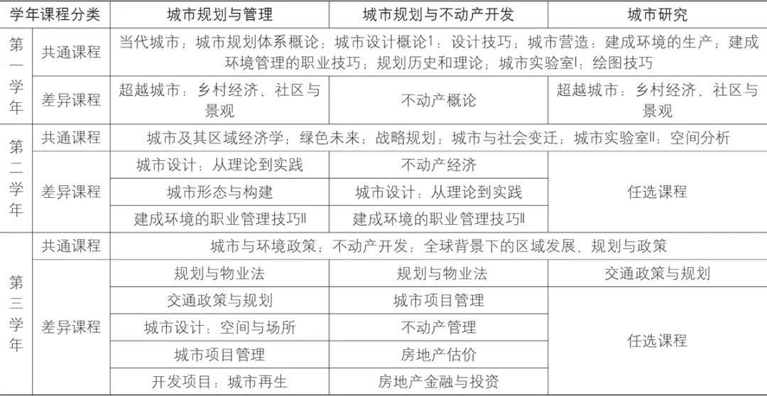 ▲ 表2 伦敦大学一楼一凤 城市规划三个方向的课程体系设置