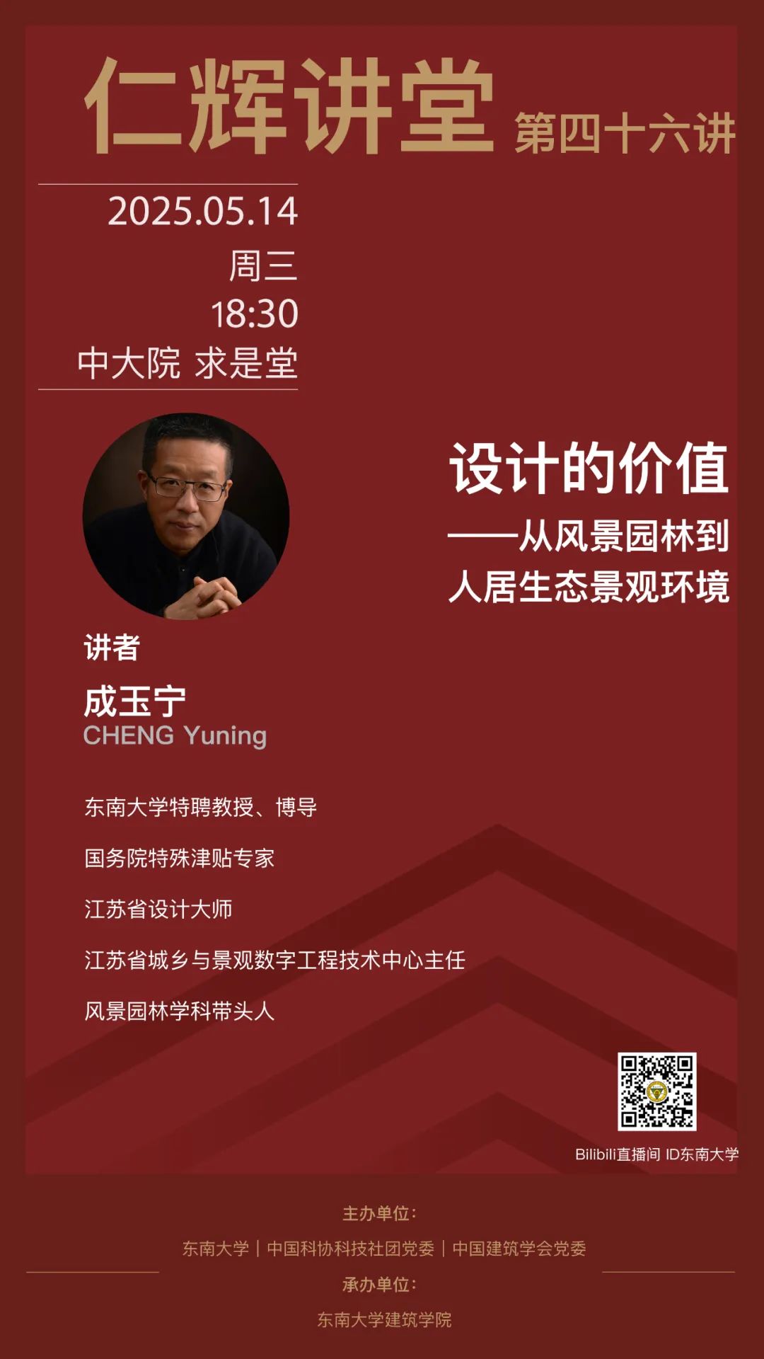 讲座内容将系统阐述人居生态景观环境的构成特征、知识体系与层级特性,提出以数据驱动、问题导向、目标引领的人居生态景观环境构建方法论,揭示符合时代发展规律的现代人居生态景观环境的研究范式与逻辑。