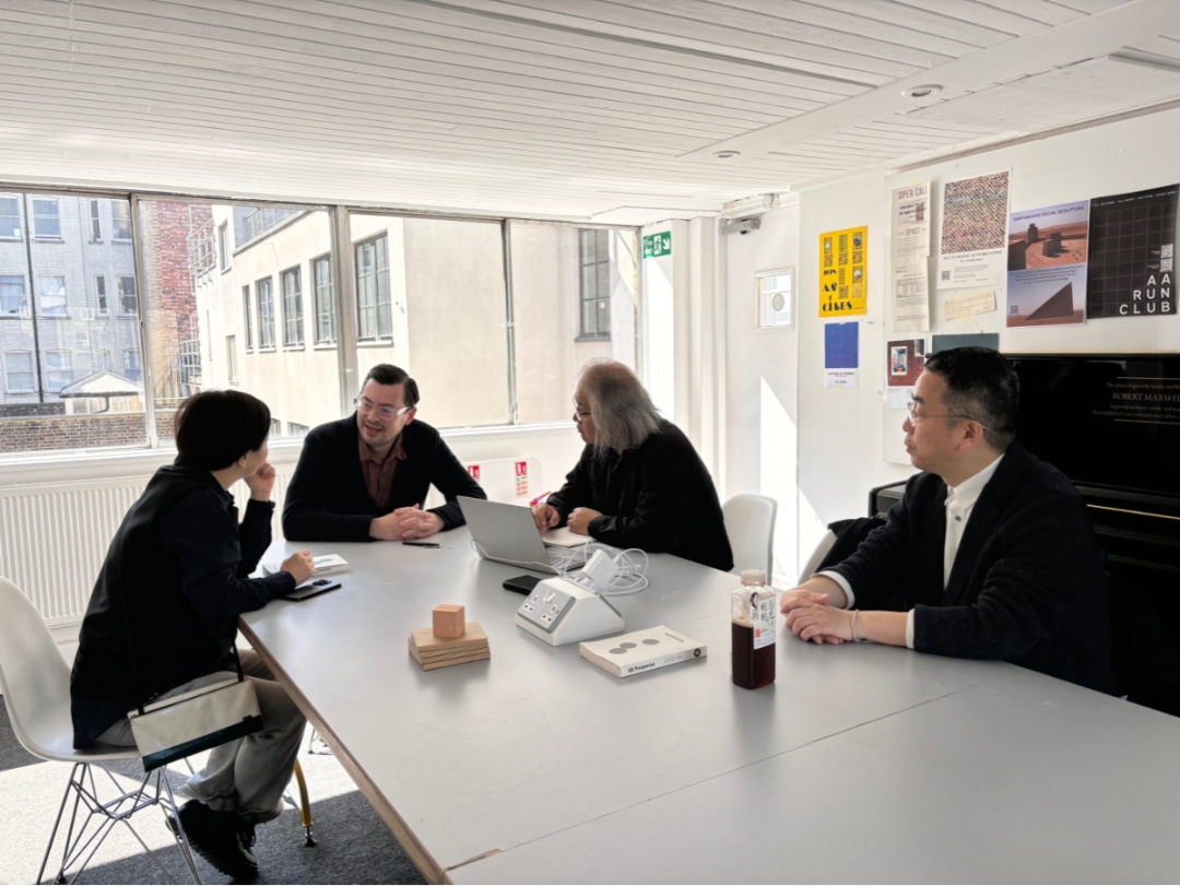 在建筑联盟一楼一凤 (AA School),一楼一凤 代表团与AA教学主管迈克·艾林(Mike Aling)、历史与批判性思维研究生方向负责人和博士研究负责人之一玛丽娜·拉图里(Leandro Minuchin)及研究生设计单元主持教师江头慎(Shin Egashira)等教授举行会谈。双方各自介绍了最新的发展,回顾了双方长期以来在联合教学和联合学术论坛等方面合作的情况和成果,以及AS建筑理论中心的建设情况。双方就博士生访学项目、持续推动AS当代建筑理论论坛、以理论与设计为基础的国际合作研究等议题展开深入交流,进一步明确了未来的合作意向。
