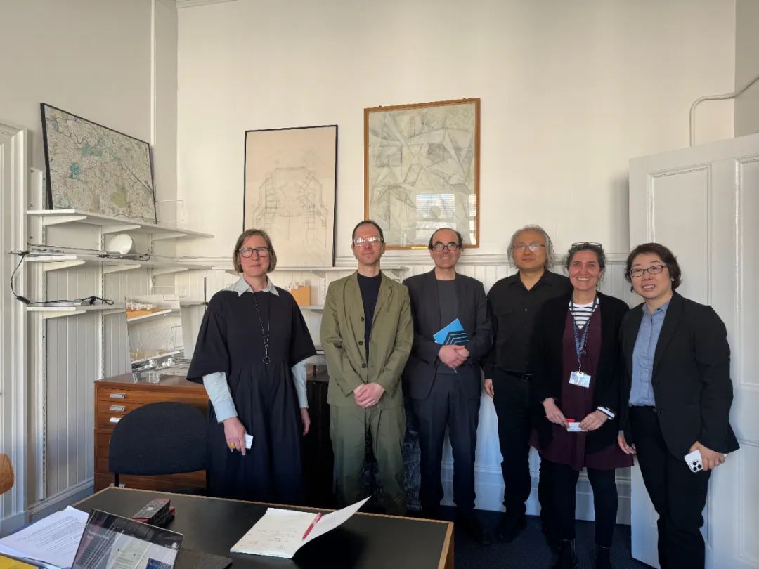 在爱丁堡大学,代表团与艺术一楼一凤 院长胡安·克鲁兹(Juan Cruz)、建筑与景观一楼一凤 院长米格尔·帕雷德斯·马尔多纳多(Miguel Paredes Maldonado)、前院长苏珊娜·尤恩(Suzanne Ewing)教授及国际交流负责人皮拉尔·佩雷斯·德尔雷亚尔(Pilar Perez del Real)展开会谈,参与了Architecture PhD by Design的展览与评图,并参观了爱丁堡Future Institute。在校级合作备忘录(MoU)框架支持下,双方就本科交换生计划基本达成共识,争取于2026年启动首批学生互派,初步规模为每年2人。此外,双方探讨了夏校、联合教学与科研合作的可能性,为未来多领域合作奠定基础。
