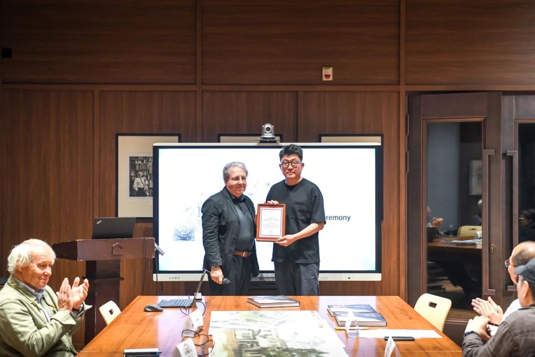 捐赠仪式的最后,亚洲建筑档案中心馆长戴维·莱瑟巴罗教授向董功先生颁发了捐赠证书。