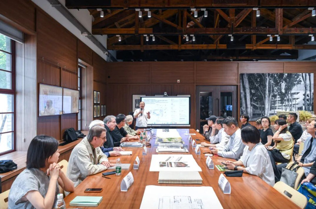 研讨会分上下两个半场,上半场由史永高教授主持。董功首先就项目的背景、设计过程、背后的思考等做了介绍,尤其是在并列对照中突出了“景德镇川上行”与“深圳荔园外国语小学”中的树的异同,以及由此带来的设计策略的差异。与会学者则基于前期实地考察的体验,围绕现场展示的档案材料,进行简短的主题性评述。戴维·莱瑟巴罗就一张川上行的平面设计草图,从笔触、表面、节奏三个方面展开解读。史永高从场地与庭院入手,指出在这个信息异常丰富的场地中,建筑师并非一味地“委身”于这个环境,而是以新的要素与环境建立对比,再去打破这种对比从而达成积极的协调。顾大庆关注整个项目设计的构图与几何,用图解分析的方法从城市策略、场地历史元素、建筑要素、空间构成和形式逻辑等方面解读了川上行的设计思维。李华认为,丰富、异质、并置,是川上行相互关联的三个特点,它们构成了游走中层叠的景象与体验。路易斯·费尔南德斯-加利亚诺聚焦董功的用光与建造,指出这些光来自东方却融入坚硬的建筑物质内,兼具实用与抒情。佩尔·奥拉夫-费德以自然要素为主题,认为树不仅是自然元素,更是空间的“工具”。 张旭从结构与建造方面提出在一个历史场地中做设计“如何界定历史原真性?又要在多大程度上去保留和表达这种历史原真性?”博通德·博格纳的发言围绕“工艺”展开,指出其本质不仅是落地执行,更始于设计思考,需长时间的专注、投入和耐力,最终呈现在建造的一系列环节。李翔宁指出这两个项目提供了一个启示,即建筑师的使命应超越服务人类,延伸至积极回应植物、动物等所有非人类的需求。