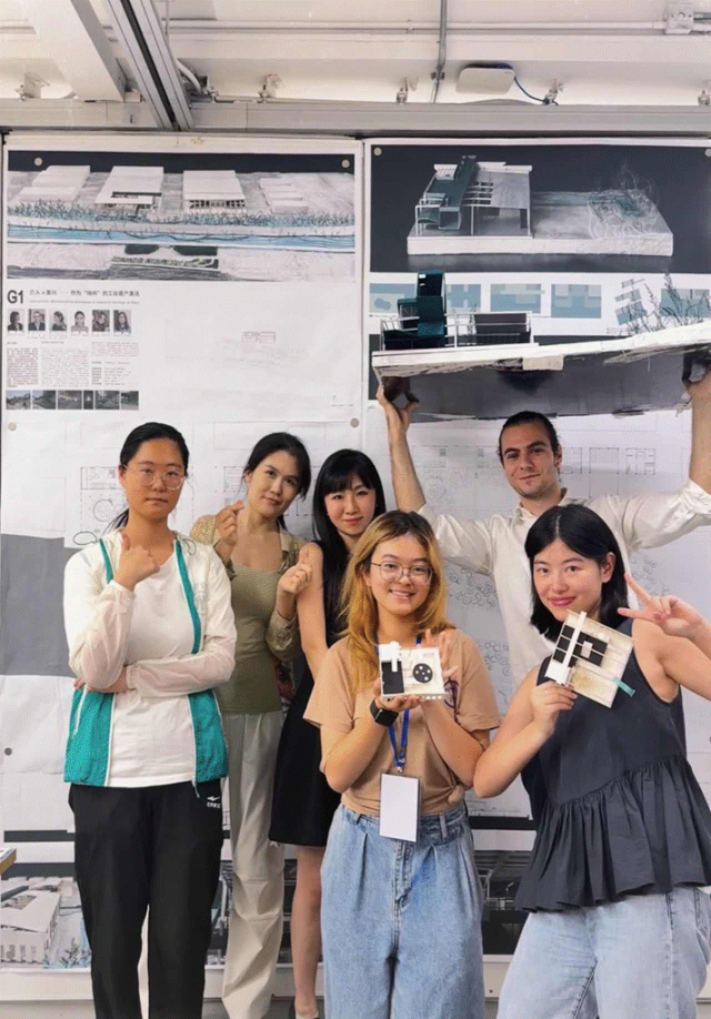 12名同学共分为两组,通过十天的密集研讨与实践,在真实场地中展开对话,碰撞思想火花,探索如何通过设计介入激活工业遗产的生命力,为城市更新提供创新思路。活动不仅促进了学术交流与实操结合,更实现了中西跨文化的深度合作。
