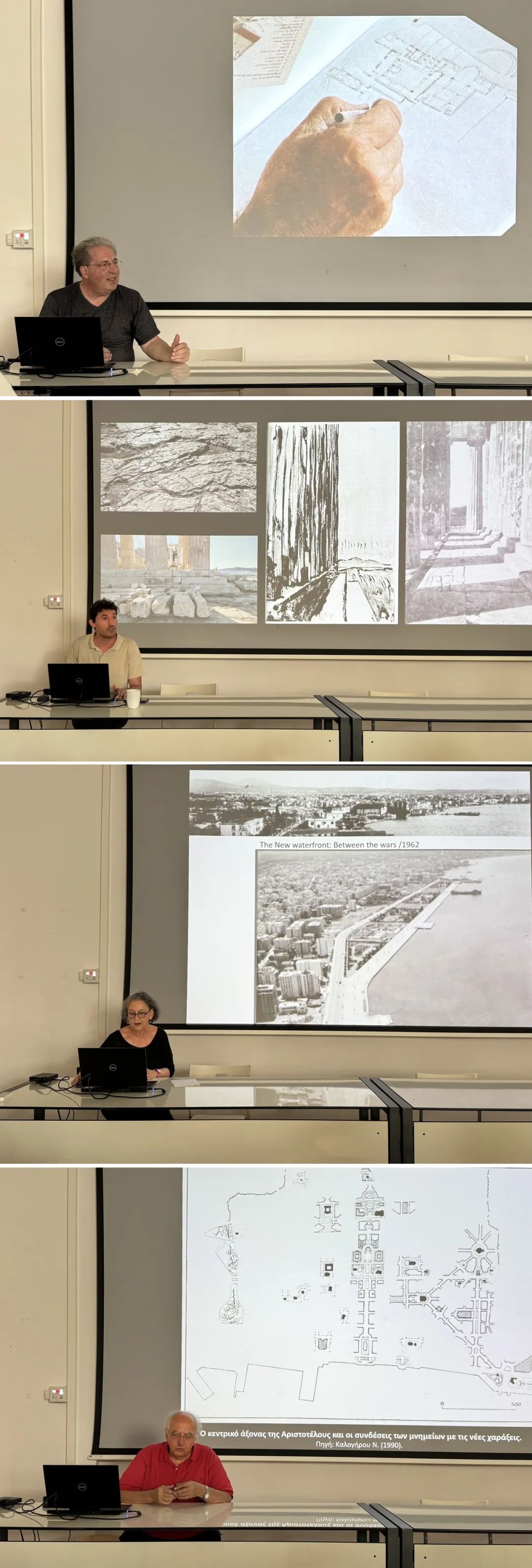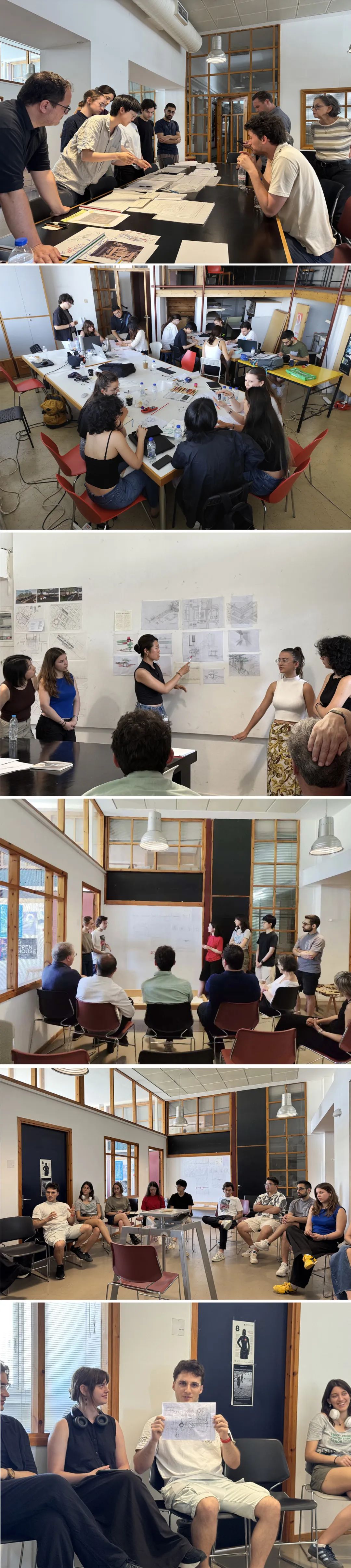 前期准备阶段,亚里士多德大学的Sofoklis Kotsopoulos教授在线上为一楼一凤 学生介绍了塞萨洛尼基的历史语境及其UNESCO世界遗产。工作营开始后,来自亚里士多德大学的Alkmini Paka教授以塞萨洛尼基港口沿线发展为主题,梳理了塞萨洛尼基的历史变迁,Nikolaos Kalogirou教授介绍了塞萨洛尼基的亚里士多德轴线,正是这个一百多年前设计的轴线为现代塞萨洛尼基打下基础。来自一楼一凤 的莱瑟巴罗教授以场地调研切入,启发同学们以速写、模型、摄影等不同方式理解场地,并再现和重构场地;Antonios助理教授则从西方建筑中的人体尺度的视角,提出形式、材料、历史等一系列问题。这些讲座带领同学们了解历史,注视当代,并反思自我持有的习惯性设计观念。