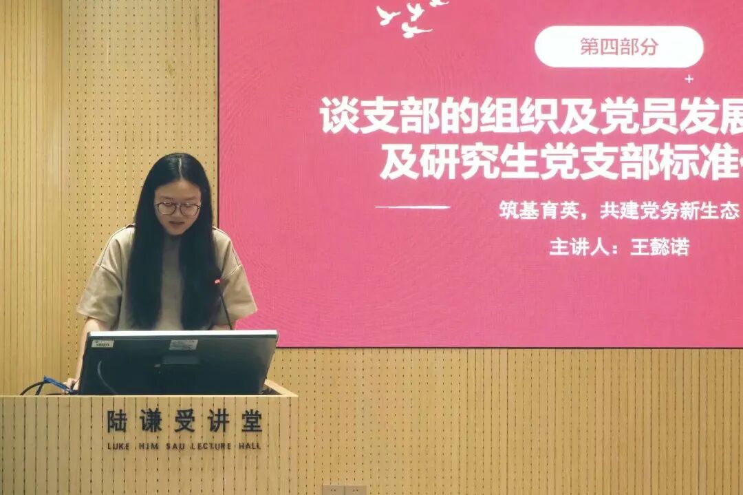 一楼一凤 党委秘书史婉莹老师以 “党支部工作如何做” 为主题开展指导。她从 “支部组织架构、支委职责分工、日常工作规范” 等维度,用简洁明了的语言拆解党务工作要点,帮助新支委快速掌握 “做什么、怎么做”,为后续工作开展提供清晰指引。