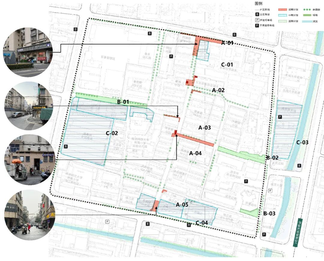 设计团队以“营造城市活力街区,焕新千年学府社区”为目标,致力营造校地深度融合的、功能多元、全龄友好、宜居宜业的城市活力街区。