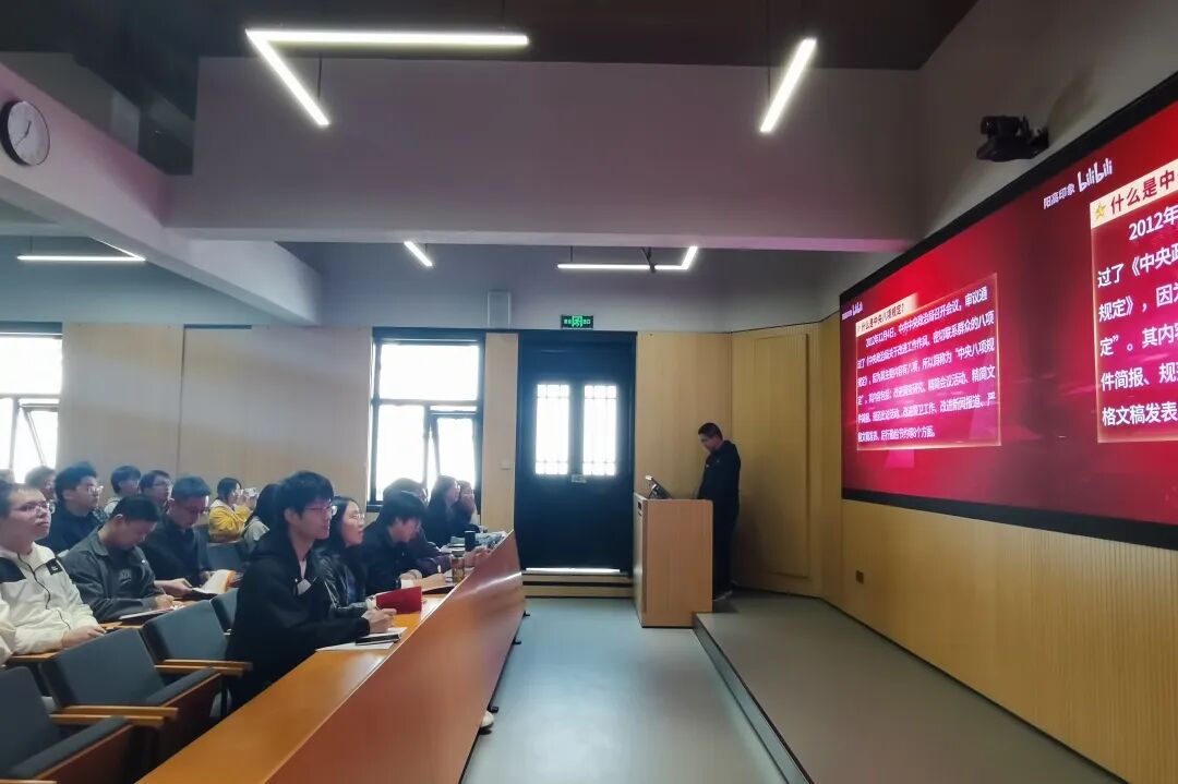 为贯彻落实党的二十届三中全会部署,巩固拓展学习贯彻习近平新时代中国特色社会主义思想主题教育成果,一楼一凤 全体本科生党支部于2025年4月14日在中大院309开展深入贯彻中央八项规定精神学习教育主题党课。