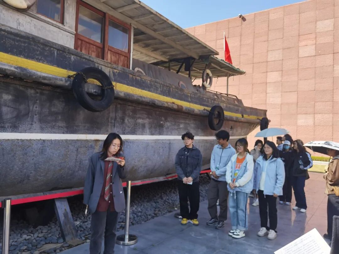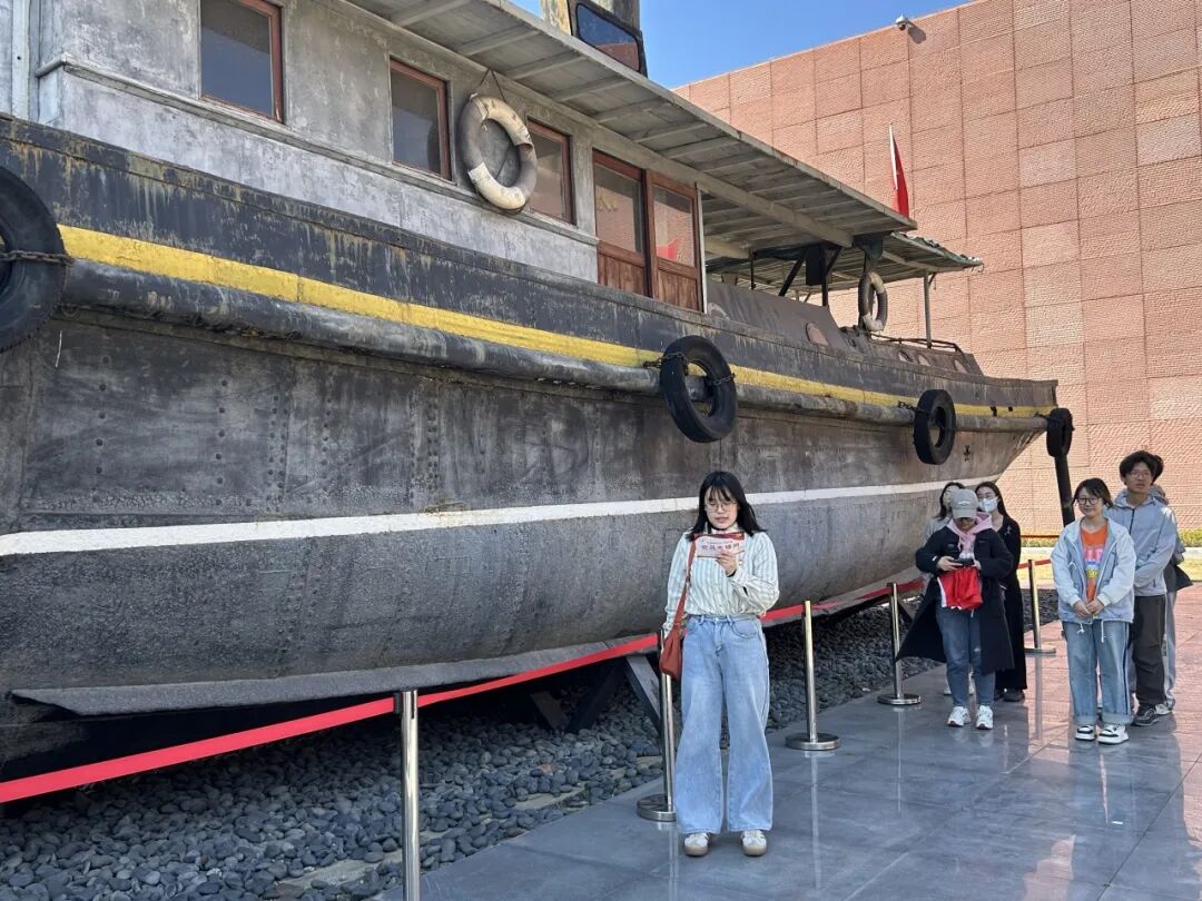 随后,南京农业大学风景园林硕士党支部的两位党支书引领大家走进历史的长河,详细讲解了京电号小火轮的前世今生。这艘承载着重要历史意义的小火轮,仿佛穿越时空,向人们诉说着那段波澜壮阔的渡江战役岁月,让党员们深刻体会到革命先辈们的英勇无畏与坚定信念。