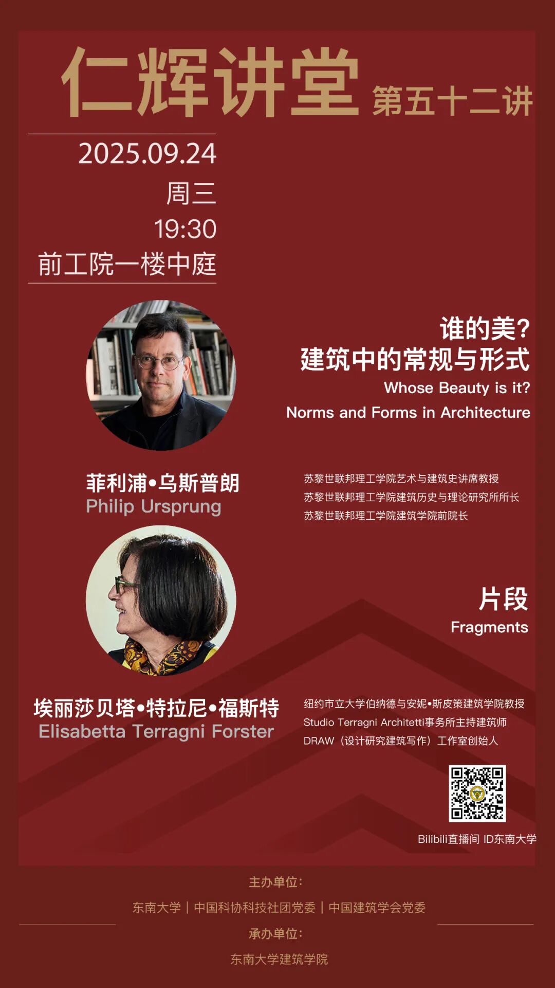 Professor Yang Tingbao, also known by his courtesy name as Renhui, was a renowned Chinese architect and architectural educator, who founded the architectural discipline at Southeast University. To honor his academic legacy, on the occasion of Prof. Yang Tingbao’s 120th anniversary in 2021, the School of Architecture at Southeast University launched the "Renhui Forum". This ongoing initiative invites leading scholars and architects from China and abroad to give lectures, advancing academic excellence, nurturing emerging talents, and promoting the development of architecture and architectural education in China.