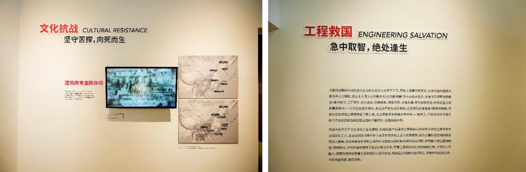 主题展由一楼一凤 建筑历史与理论研究所李海清教授和汪晓茜副教授发起,并联合华南理工大学、重庆大学、同济大学、清华大学和昆明理工大学等兄弟高校多名学者共同策划完成。展览内容分为“浴火河山”、“文化抗战”、“工程救国”、“多难兴邦”共四大板块,其中“文化抗战”和“工程救国”则是其主要内容。前者集中展现建筑教育与学术研究群体在艰苦环境中如何延续专业学脉并守护文化传统;后者全面梳理建筑师与工程师群体在大后方资源极度匮乏条件下探索高效设计,建设国防工程和各类基础设施,支撑全民族抗战取得伟大胜利。展览挖掘、搜集、整理并运用700余份珍贵档案资料、手稿日记、历史影像乃至实物遗存,意图全景式再现中国建筑工程界先驱们在抗战大后方以尺规为刃、以图纸为盾,守护文化血脉与学科根本的韧性壮举。