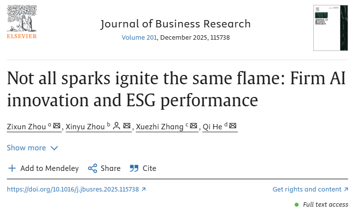 Academic Research Spotlight: Zhou Xinyu — "Firm AI Innovation and ESG Performance"