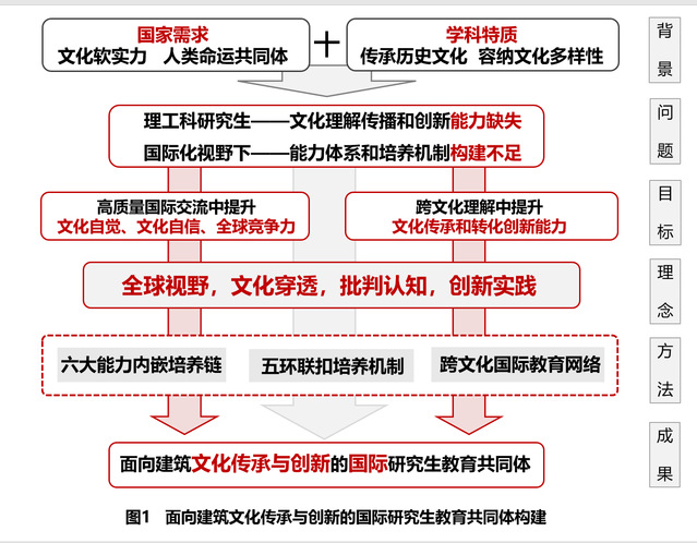 建筑是人类文化的重要承载,建筑类学科兼具科学、人文和艺术属性,具有传承人类历史遗产、容纳文化多样性的内质和机能。然而在国际视野中推动文化传承和创新的人才培养体系与机制建设仍显不足。