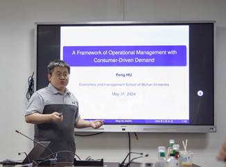 5月31日,管理科学与工程学术论坛第64期在学院357成功举行。本次论坛邀请到了华中科技大学胡鹏教授进行学术报告,题目为Applications of Operational Management with Consumer-Driven Demand(消费者驱动需求情形下的若干运营管理应用)。学院许明辉教授、戴宾教授、冯华、柯剑男、李彬、石越、廖颖、袁茂、杨永歌等10余位老师和30多位校内外博、硕士研究生及本科生参加。陈植元副教授主持本次论坛。