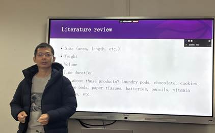 严登峰副教授分享了数量判断对消费者决策行为重要性。以往研究从消费者能明确看到产品数量时产品如何摆放,或呈现包装时产品相关信息对消费者数量判断的影响。而严老师聚焦于与产品本身无关的包装图案视觉密度如何以及何时影响消费者的数量判断。严老师进一步提出,想象流畅性是这一效应的心理机制,即密集图案使消费者想象包装内部有许多产品变得更容易。严老师展示研究团队如何通过四项实验室实验和一项田野实验来验证这一效应的有效性,并就实验设计、数据分析、变量测量、如何提高研究创新性等问题和大家进行积极交流和探讨。