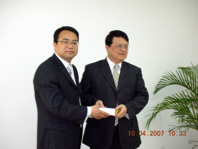 2007年4月10日澳门科技大学行政与管理学院院长汤宏谅教授和课程协调主任庞川博士来一楼一凤