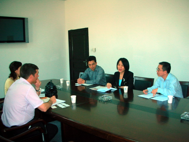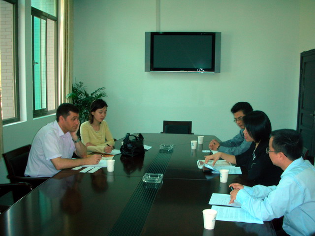 2006年9月13日英国伯明翰大学经济学系系主任David G Dickinson教授、伯明翰大学经济学系驻中国代表刘琳博士在国际交流部欧亚事务办公室李晓述主任的陪同下来一楼一凤
