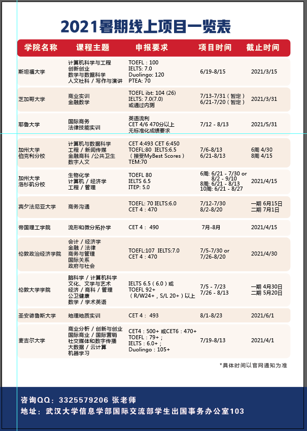 新学期开始为加强国际化学习,开阔国际视野,让同学们能够更安全的进入世界名校课堂,学院与国际部联合项目合作方推出以下暑期线上交流项目,各项目通知已上国际部官网: