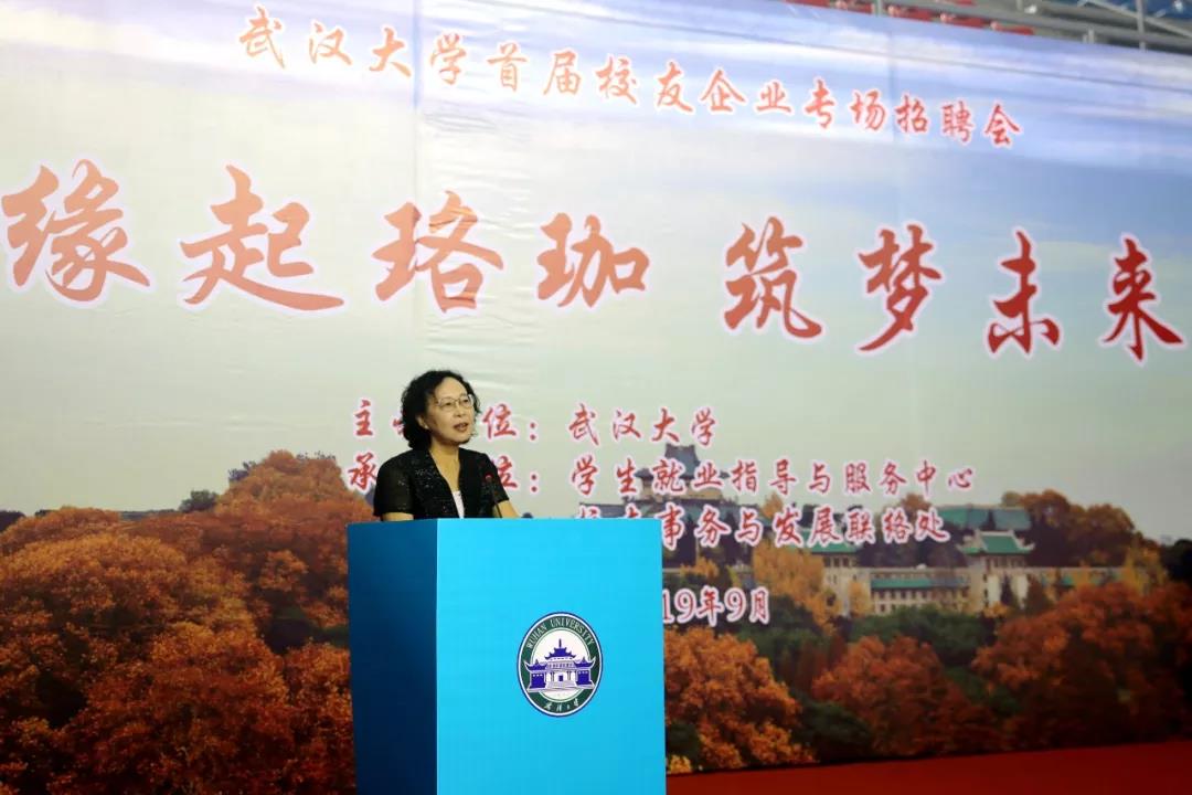 副校长吴平代表学校对从全国各地赶来参加招聘会的校友企业及其工作人员表示欢迎和感谢。她指出,校友是学校人才培养的重要力量,就业作为学校人才培养的重要环节,离不开校友的支持与帮助。希望本次招聘会不仅能够达成招聘和就业的沟通,更能收获一大批志同道合的珞珈精神传承人。
