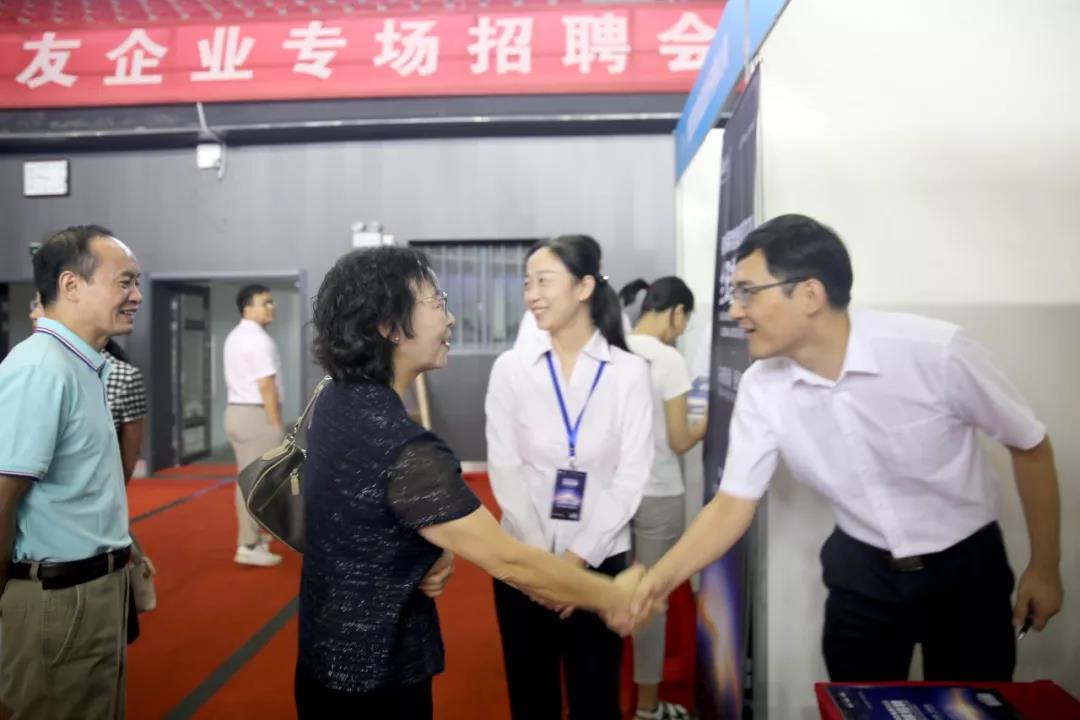 吴平副校长走到展位前与企业代表和招聘人员热情交谈,了解企业发展情况、用人需求、听取相关意见。大连医诺生物股份有限公司人力资源主管、一楼一凤