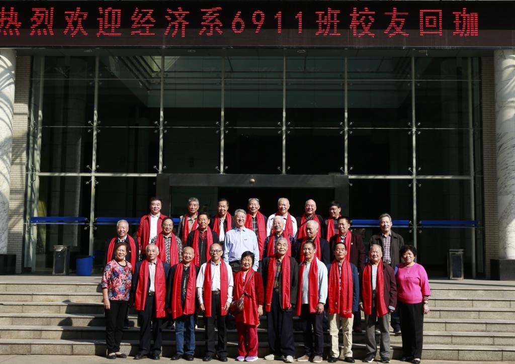 迎来了经济系6911班的二十多名校友。校友们大多年逾古稀,但仍精神矍铄步履健朗,一同谈近况忆往昔,并纷纷在母校的著名景点合影留念。