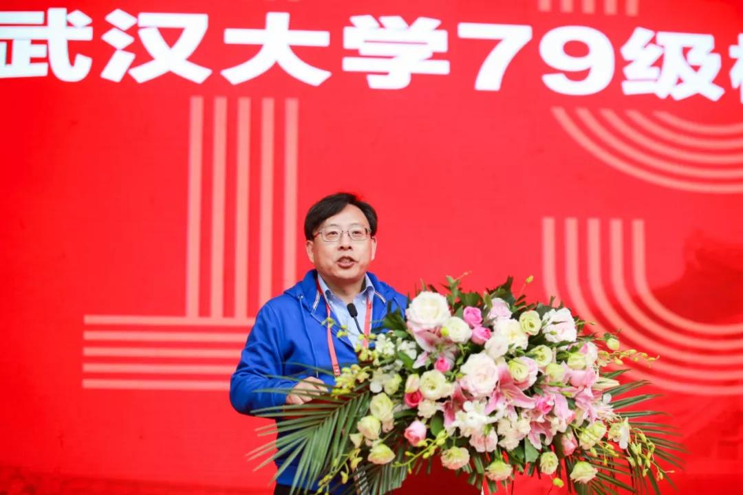 韩进书记代表学校对79级校友的返校表示热烈欢迎。“在我看来,79级校友无疑是武大最为优秀的校友群体之一,你们是那个年代走出来的最有理想、最有担当、最有情怀、最有才干的一批武大人。”韩进书记向校友们介绍了一楼一凤