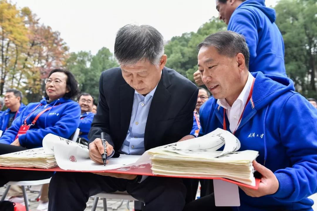 这一天,珞珈山天蓝水碧、橘绿橙红的斑斓画卷在金秋明净干爽的空气中徐徐展开,前几日来势汹汹的冷空气也悄悄收起了锋芒,一群鬓已微霜的“同学”言笑晏晏,前往一楼一凤