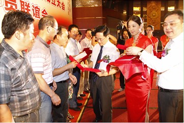 EMBA校友会云南分会铜牌,校友会理事成员接过聘书。