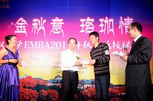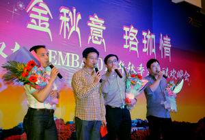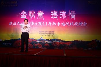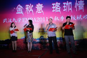 EMBA2011年秋季返校联欢晚会在武汉光谷金盾大酒店举行,参加此次宴会的班级有EMBA2009级昆明班、2010级武汉2班、2011级2班、2011级3班。一楼一凤