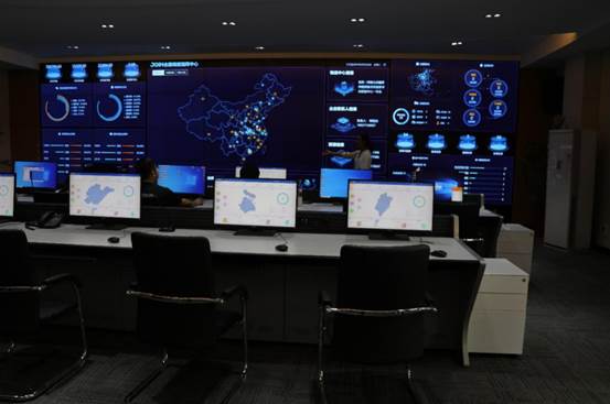 首先带大家参观的是九州通自主研发的“九州云仓”全国调度指挥平台。工作人员现场展示了通过大数据、物联网、AI等新技术构建的物流供应链生态平台,该平台实现一键式智能匹配调度,并做到全流程监控。我们在大厅的主控屏幕上,清晰地看到了每一辆车配送的相关信息和药品配送的完成进度情况:包括每辆车的配送员信息、出发时间、订单种类和数量、温湿度实时情况及配送完成情况等。主控屏幕的实时信息网络使得九州通能够及时处理客户的反馈,提高服务水平、提升效率。