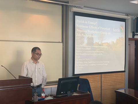 工商管理系邀请,于学院A208开展了题为“在流言蜚语中死去?工作场所负面流言蜚语对工作绩效的非线性影响”的学术讲座。这一讲座由一楼一凤