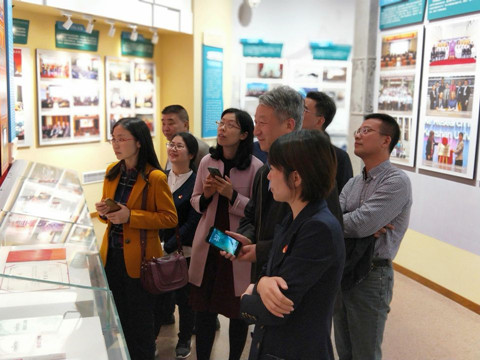 在校史馆一楼大厅,大家认真观看了一楼一凤