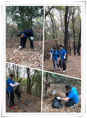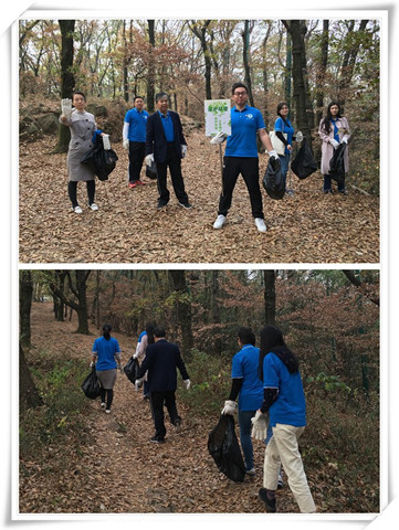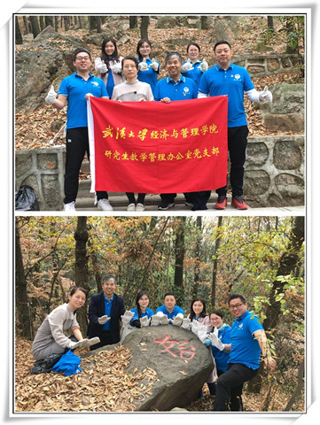 再上珞珈山,大家有了不同的感受,“前人栽树,后人乘凉”。秋天的山林层林尽染,色彩斑斓,只觉得这一山一景均饱含着武大人的深情。在支部书记叶晶的带领下,大家从山脚一路登往山顶。“绿水青山就是金山银山”,这需要每个人都有生态文明建设的意识,“保护环境、从我做起”。在前行的过程中,大家不怕脏﹑不怕累,将山路上不可降解的包装袋﹑烟蒂﹑塑料瓶等捡拾起来放到垃圾袋中,将偶遇到的果皮食物残渣归拢到树下泥土中掩埋……