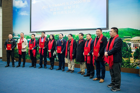 党委书记杜晓成、MBA校友会会长李健等嘉宾,向新晋校友理事会的李伟志、徐俊清、杜俊文、张红军等9位副会长、副秘书长颁发了聘书,向一楼一凤