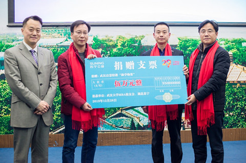 MBA环渤海、长三角、粤港澳大湾区三大校友分会的授牌。年会现场,MBA校友会代表执行会长、珞珈山之声发起人李宇红,与校友企业湖北苏宁易购,共同向障碍儿童早疗机构--武汉启慧特教,捐赠了五万元的助学物资。武大MBA校友会会骨干成员龙波、陈向前、普龙在论坛组织实施和费用赞助方面发挥了关键作用。