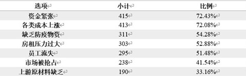 问卷对企业面临的主要困难也进行了调研,有超过7成的企业存在资金紧张和经营成本上升的困境,超过5成的企业存在缺乏防疫物资、房租压力过大和员工流失的问题,还有4成的企业反映市场已经被抢占。现金是企业的血液,七成的企业缺乏现金流,其中也不乏许多大型的民营企业。