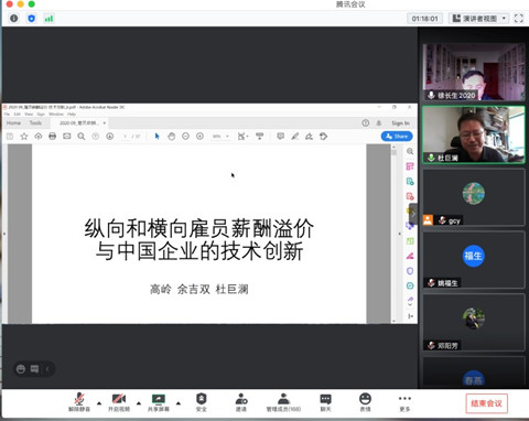 经济发展研究中心副主任李卓教授主持。主讲嘉宾中国人民大学经济学院陈彦斌教授、香港中文大学经济系杜巨澜副教授、华中科技大学经济学院徐长生教授分别以“构建双循环需要重构消费与房地产发展模式”“纵向和横向雇员薪酬溢价、组织控制与中国企业的技术创新”“要素市场化与供给侧结构性改革”为主题汇报了各自的最新研究进展,启发人们在当前保护主义上升、世界经济低迷、全球市场萎缩的外部环境下,更深入地思考供给侧结构性改革与高质量发展的关系。