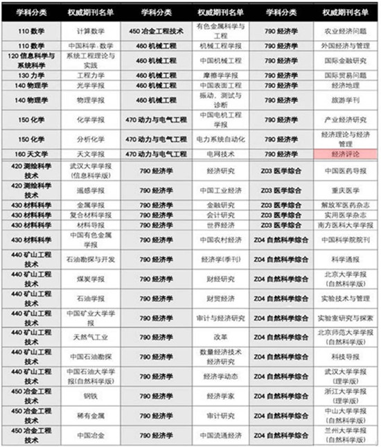 附表:“中国学术期刊评价分学科权威期刊名单”(部分)